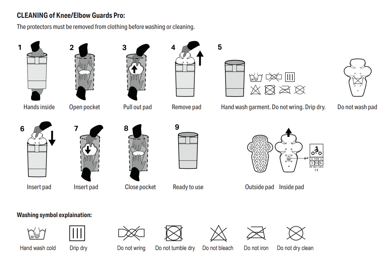 Nachfolgend findest du Anweisungen zum Waschen deiner Schutzausrüstung der PRO- und LIGHT-Serie.